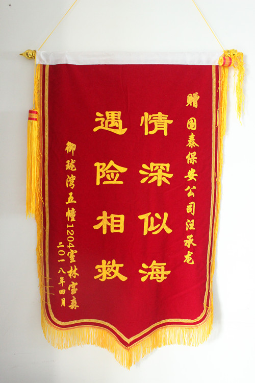 今天,公司里來了一位手拿錦旗的老師伯,滿懷激動的說:“這枚遇險相救情深似海的錦旗是要送給我們公司的隊員汪承龍,要是沒有他幫忙打求救電話,我都已經(jīng)不在了,要感謝你們公司培養(yǎng)了這么優(yōu)秀的隊員,真的謝謝他。”老師伯——林寶森向我們描述了當時的情形。