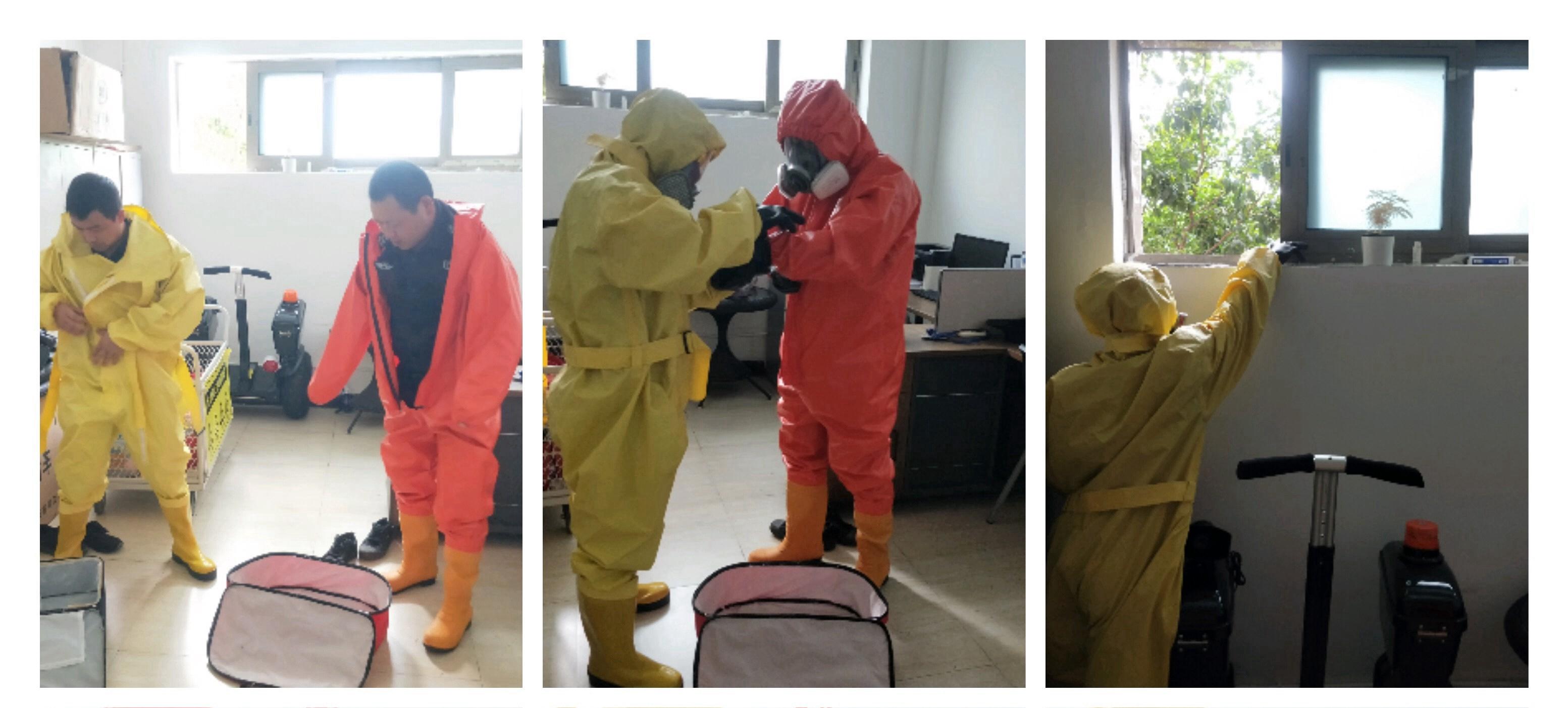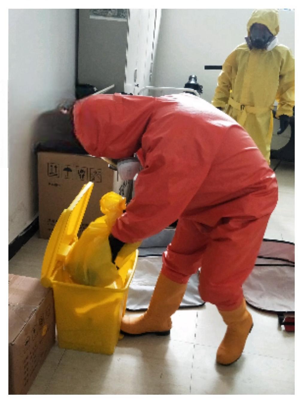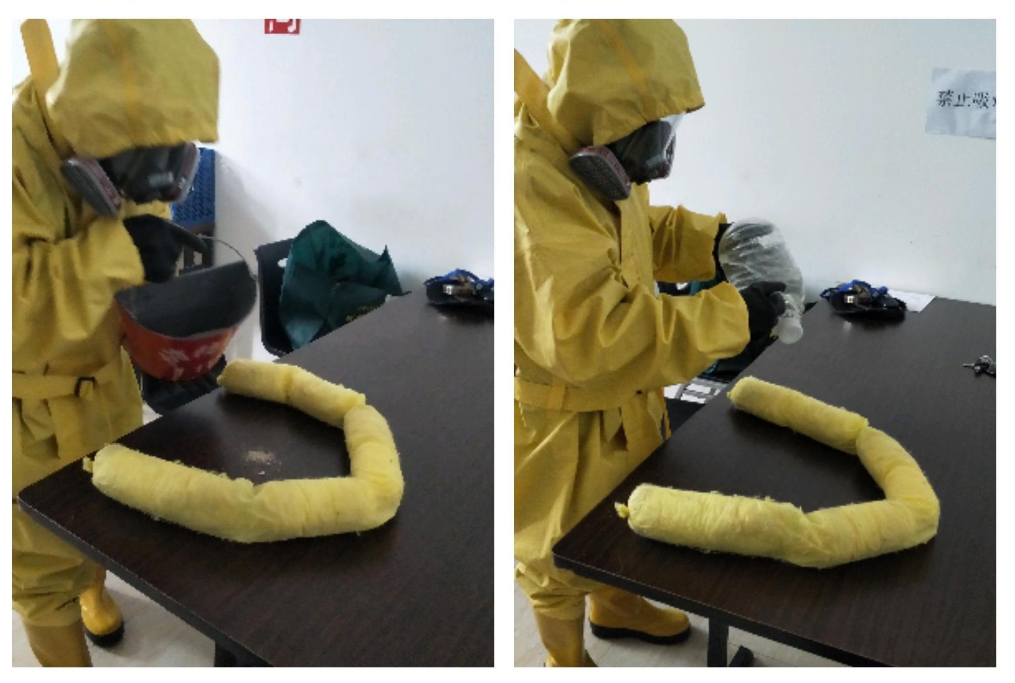 培訓(xùn)內(nèi)容涉及?;肥鹿实念A(yù)警、報(bào)告、疏散、救援等多個(gè)環(huán)節(jié)。培訓(xùn)過程中,隊(duì)員們以最快的速度穿上防化鞋服、戴上防毒面罩和防腐手套,用專業(yè)的動作將?;锲钒鼑饋?,防止它外溢,又熟練的將物品倒入危化物品專用袋投放到?;锲穼S孟?。整個(gè)練習(xí)流程非常嚴(yán)謹(jǐn)有序,做到有條不紊,對?;锲愤M(jìn)行安全高效處置。