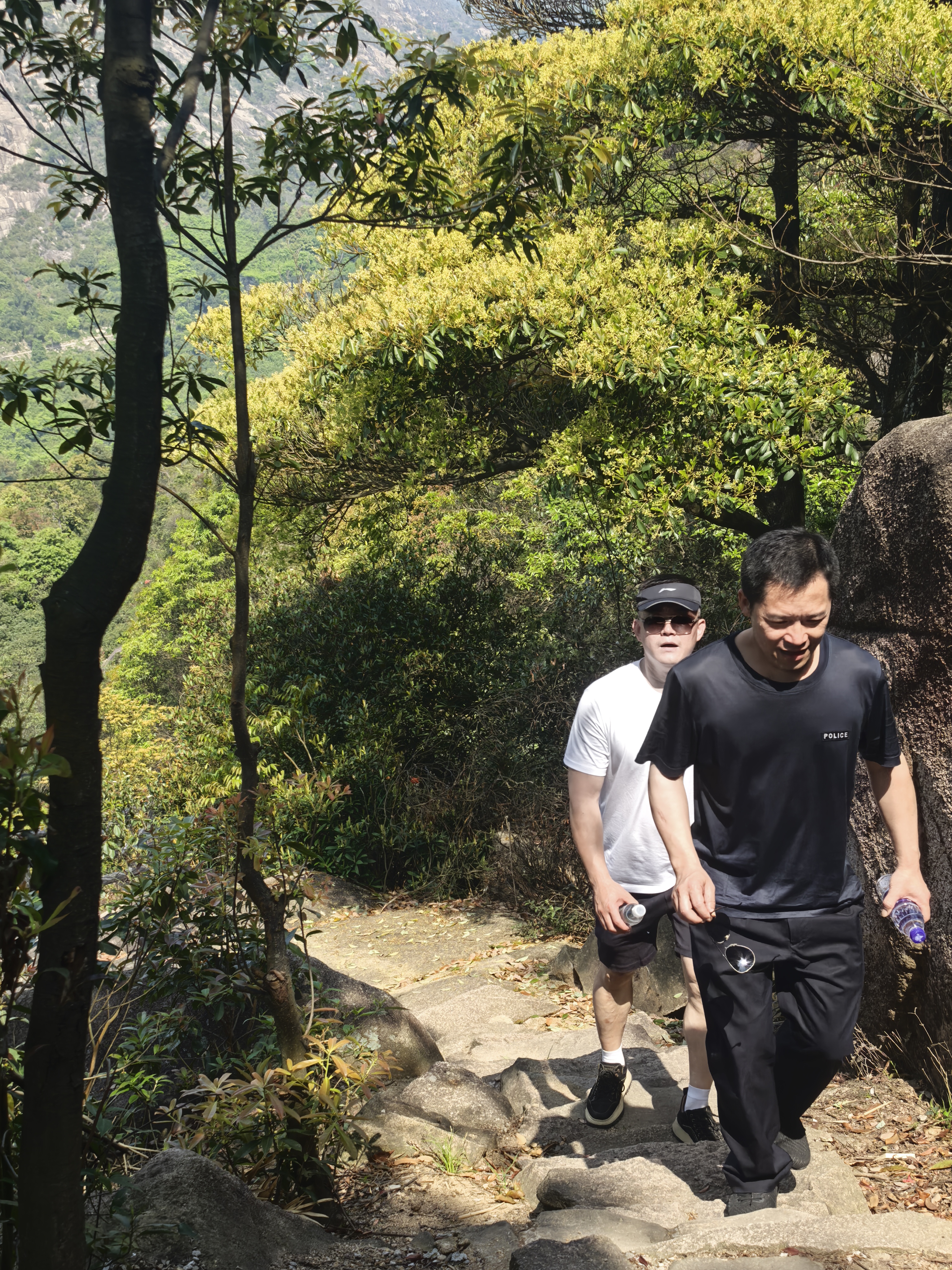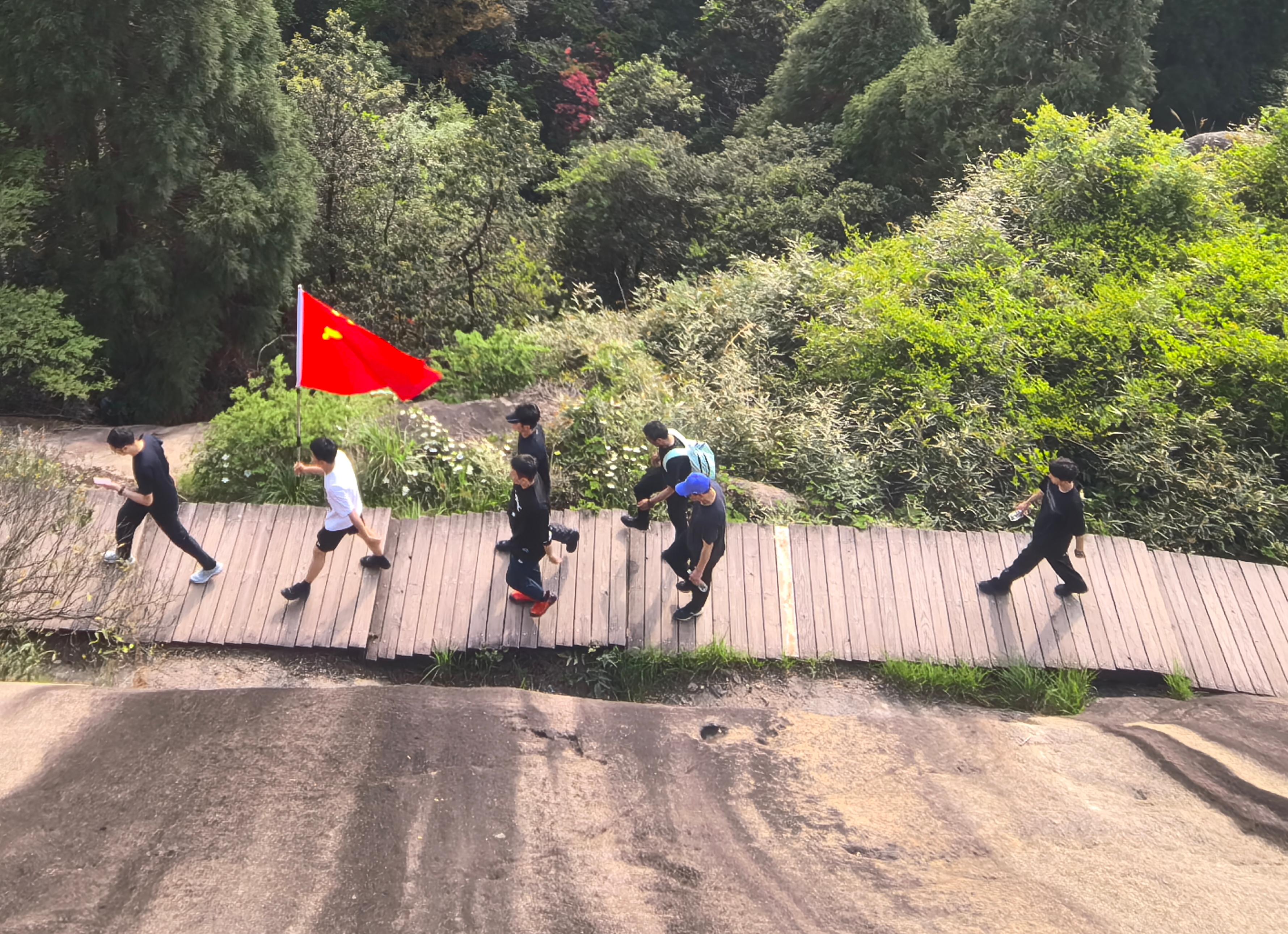 ? ? 午后的大羅山春風(fēng)拂面,三方隊(duì)伍從山腳整裝出發(fā)。蜿蜒山道上,民警、技術(shù)員與保安隊(duì)員混編成組,老民警以經(jīng)驗(yàn)指引路線,年輕隊(duì)員以體力探路開道。行至蘑菇巖,奇石林立的險(xiǎn)峻地貌考驗(yàn)著團(tuán)隊(duì)默契。隊(duì)員們自發(fā)結(jié)成“互助梯隊(duì)”——你拉我一把,我為你遞水,登山杖在彼此手中傳遞,汗水與笑聲在山谷間回蕩。