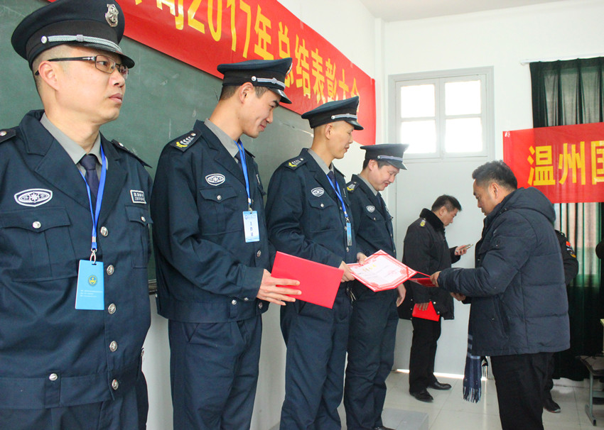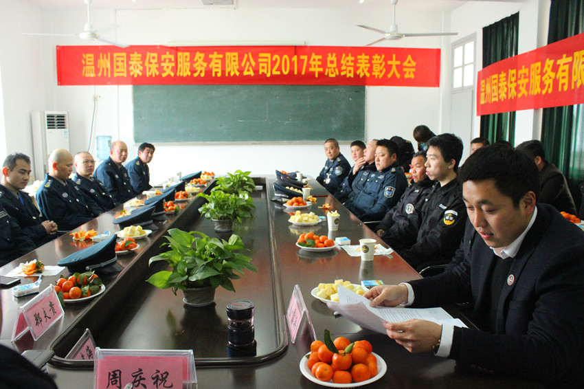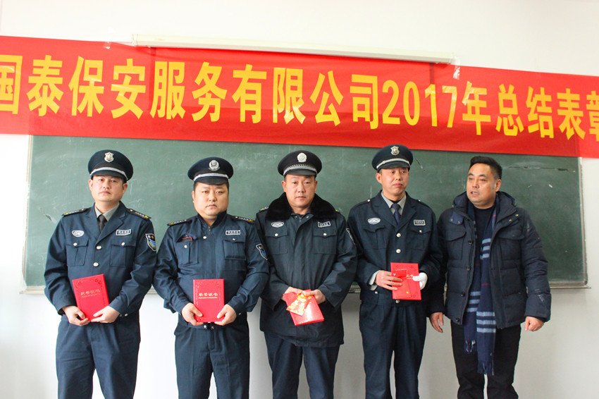 為調(diào)動(dòng)保安員的積極性,提高工作積極性,提升工作效率,溫州國(guó)泰保安公司于2018年2月4日下午召開(kāi)2017年度表彰大會(huì),公司總經(jīng)理周慶祝,副總經(jīng)理金露兵、鄭夫貴出席了會(huì)議。