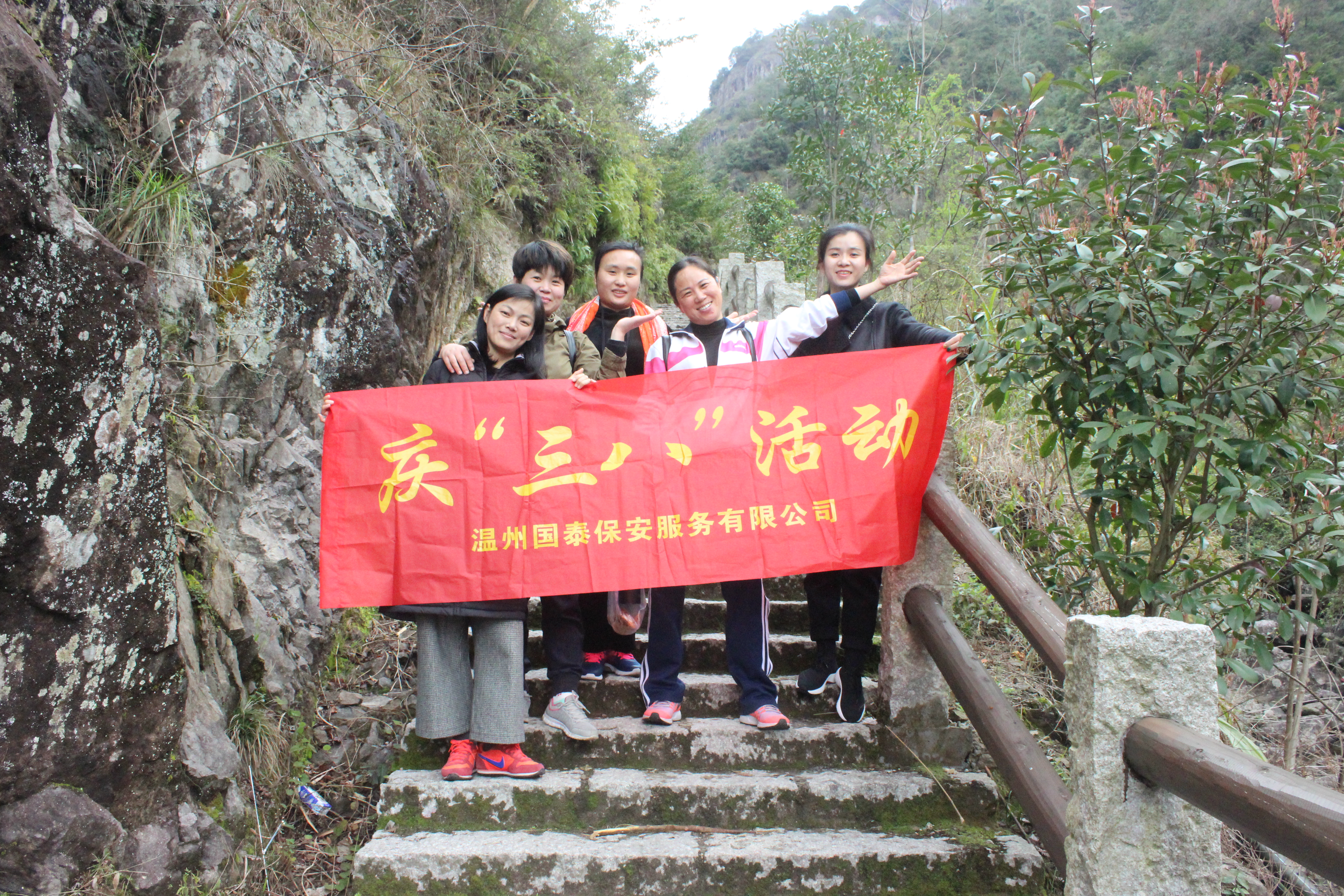 為營造健康、和諧、積極向上的節(jié)日氛圍,進一步提升女職工愛崗敬業(yè)、樂于奉獻的工作熱情,3月8日上午9點,溫州國泰保安服務有限公司舉行了慶“三八”麗人節(jié)登山活動,女職工聚集在小若巖山腳下,登山過程中雖然大家滿臉的汗水,但相互之間親密的談笑,使整個爬山過程中充滿了溫馨、愉快的氛圍,經過近三個小時的不懈努力成功到達山頂并沿路返回。